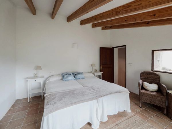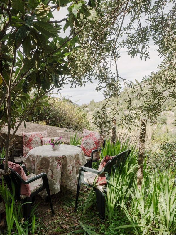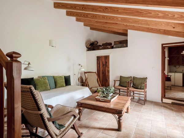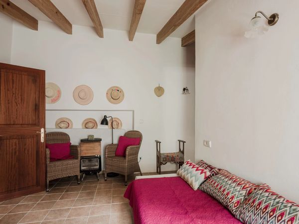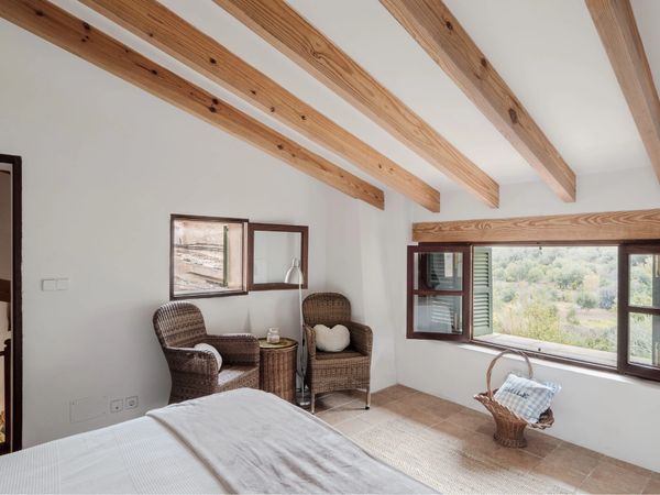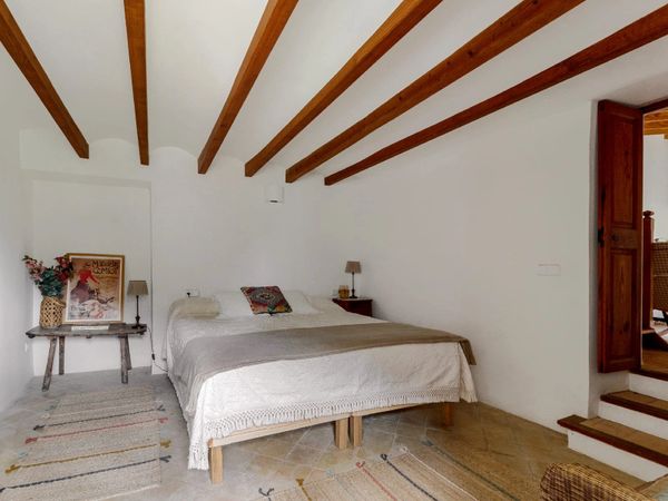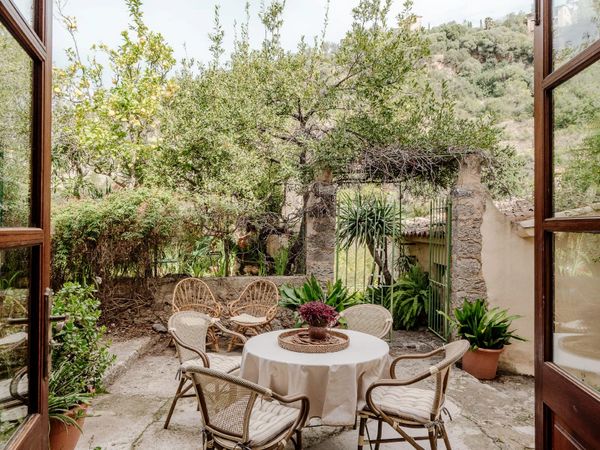 A small private garden provides a quiet outdoor space to unwind, with views towards the mountains. The property accommodates up to four guests, or five with the addition of a sofa bed, and offers a calm, easy base for exploring Deià and the surrounding coastline.