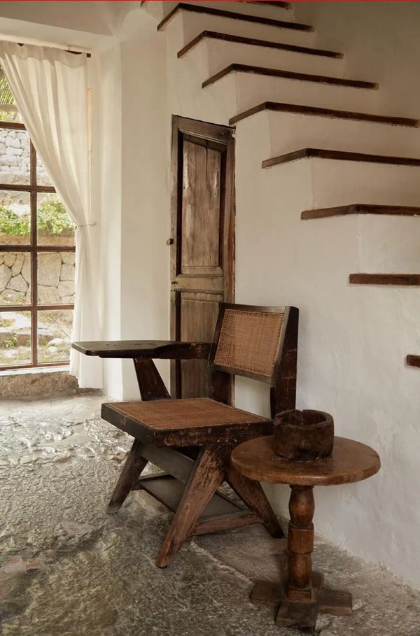 The existing home retains original features, including natural stonework and exposed wooden beams, creating a bright and tranquil living environment.